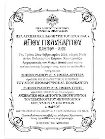 AgPolykarpos1Μέσα στη σεπτή χορεία των μαρτυρικών ιεραρχών της ιστορικής και αγιοτόκου μικρασιατικής γης εξέχουσα θέση κατέχει ο τιμώμενος στις 23 Φεβρουαρίου ένδοξος ιερομάρτυς του Χριστού Άγιος Πολύκαρπος Επίσκοπος Σμύρνης, ο οποίος κατέστη Αποστολικός Πατήρ της Εκκλησίας, αφού σύμφωνα και με τον ιερό υμνογράφο υπήρξε «και τρόπων μέτοχος και θρόνων διάδοχος των Αποστόλων».